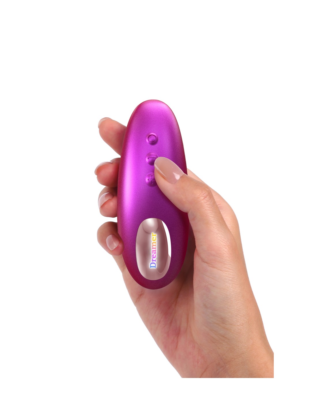 Dreamer, modèle Iridescent Berry, est un luxueux stimulateur clitoridien rechargeable et télécommandé doté de la fonction "Flapping" qui imite à la perfection une langue agile.