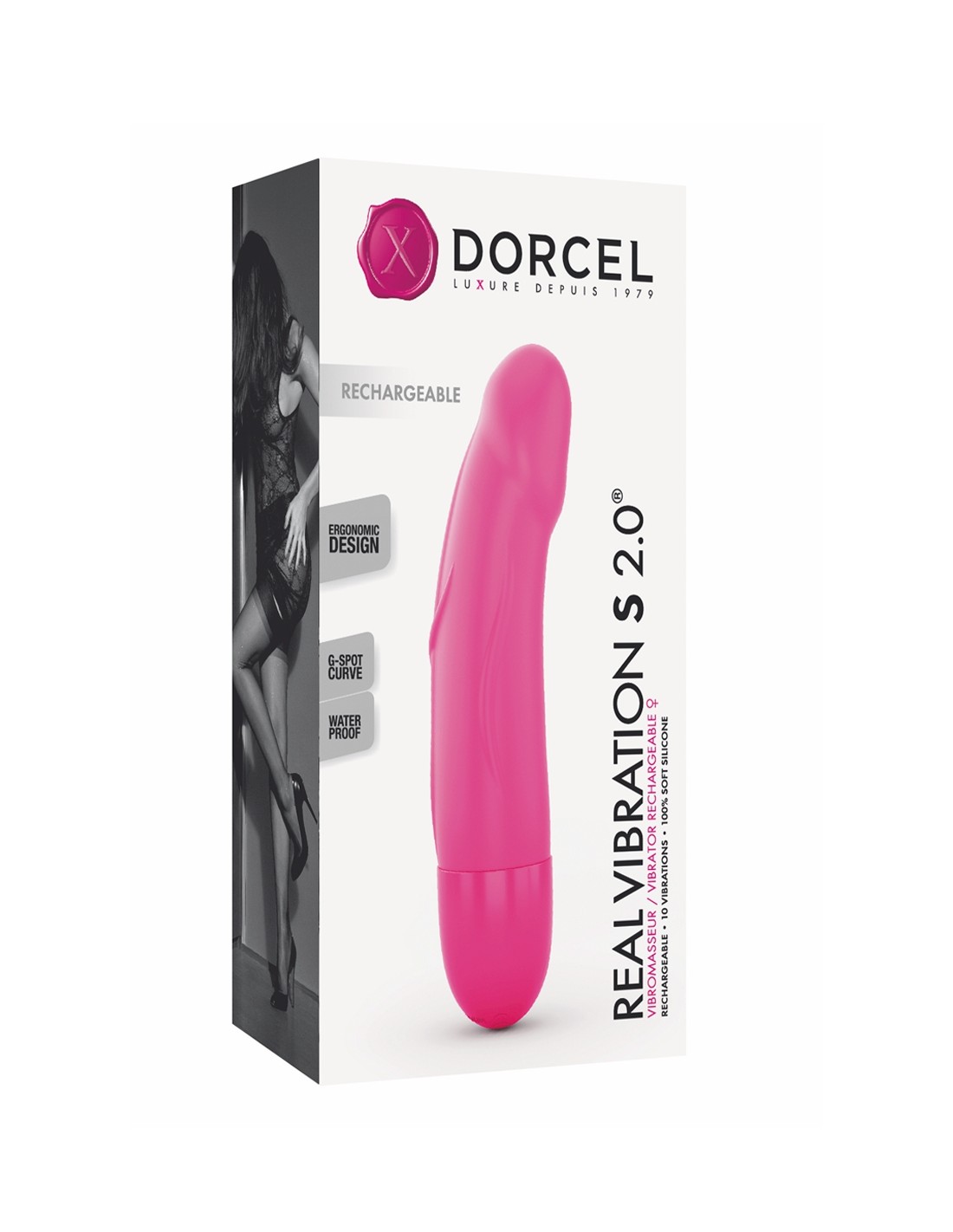 Plus petit modèle de la série Real Vibration, le nouveau vibromasseur Real Vibration version 2.0 (couleur rose) taille S, de chez Dorcel, est rechargeable et résiste aux éclaboussures.