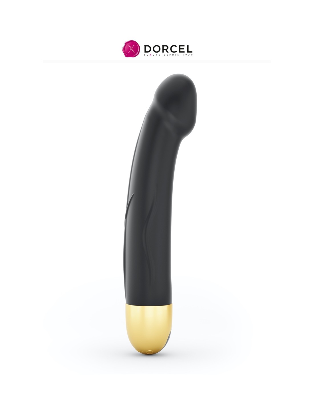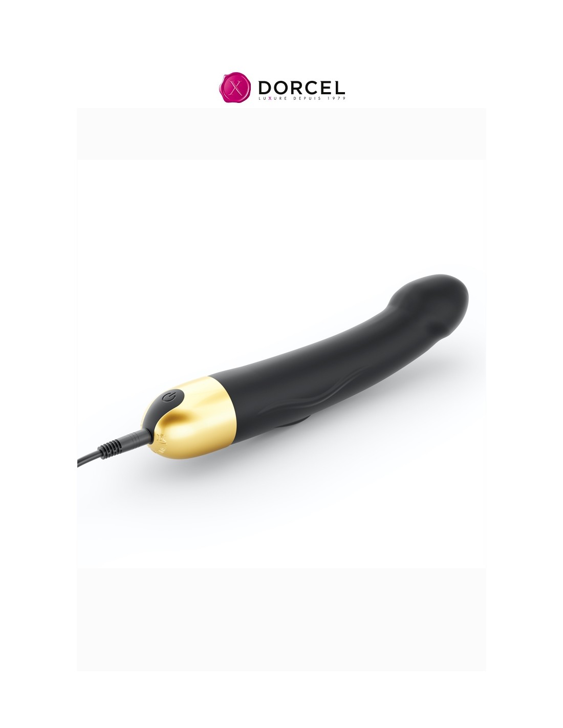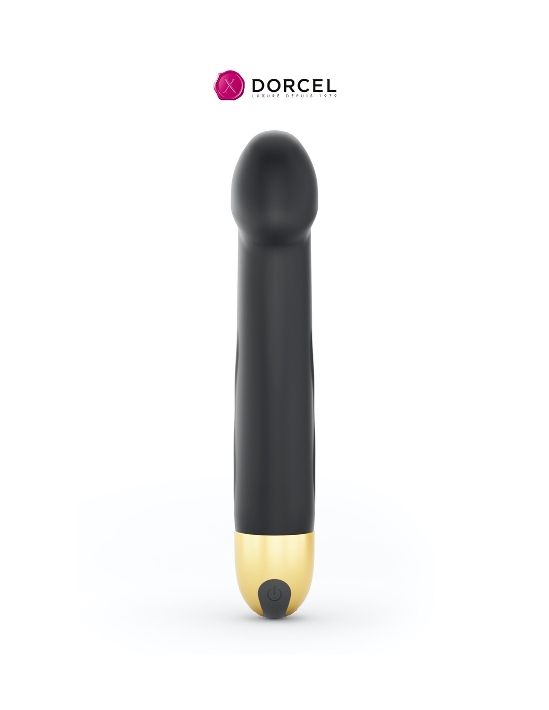 Le nouveau vibromasseur Real Vibration noir et or, taille M, version 2.0, de Dorcel, est rechargeable et résiste aux éclaboussures.